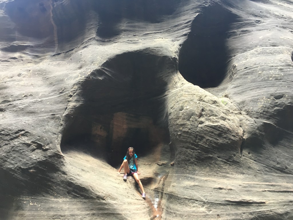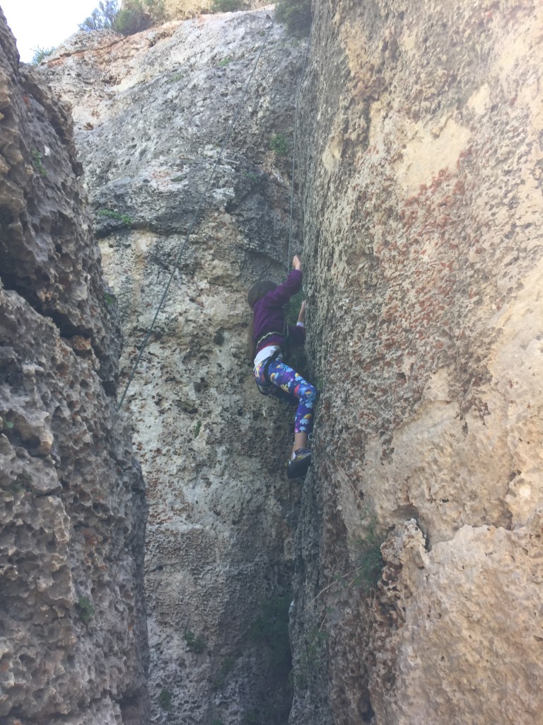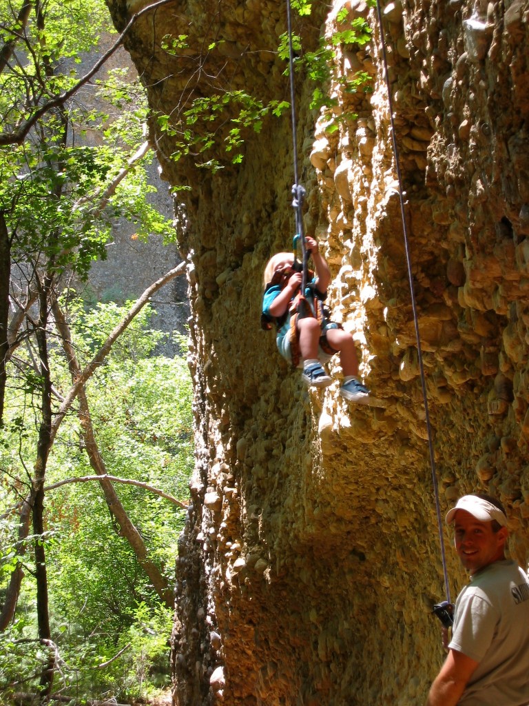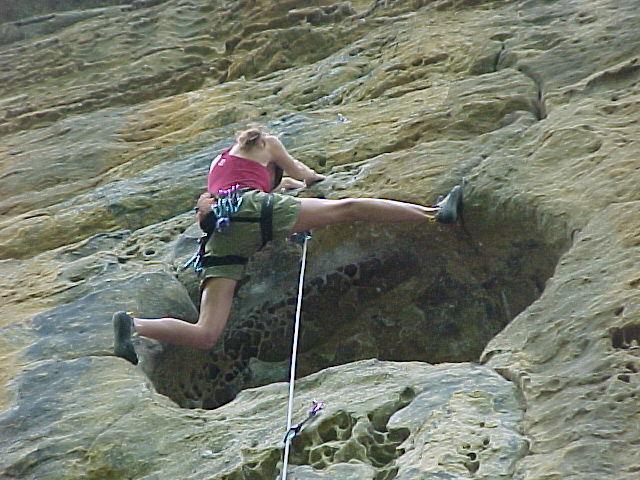 Maddie at Sand Rock testing out some prototype climbing sandals 2003