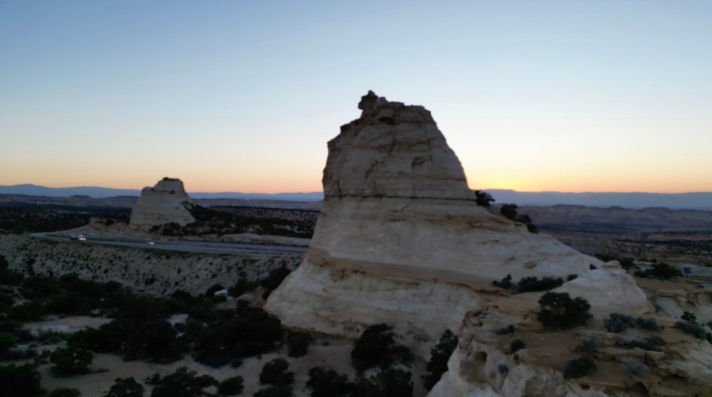 Our camping spot for the night was a little out of the ordinary. We stopped at a pull-off on I-70 in the San Rafael Swell to eat supper. We had a cell signal, so we decided to stay there for the night. We watched a beautiful sunset while we ate black beans and chicken. The picture at the top of the post is just after the sun went down.