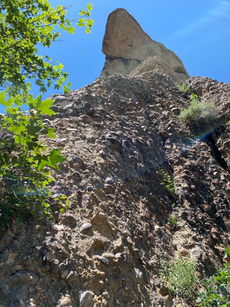 We rolled up in the canyon after lunch, and surprise, it was full of people. I thought about Chris as we rounded the corner to see the Heart Rock. We found the parking area for the climb Maddie had on her tick list, and there were only a couple of cars there. We decided to give it a try. The hike was brutal. I would call it more of a bushwhack than a hike. We had to go up a forty to sixty-degree scree field with trees beating us in the face. Scree fields or talus slopes are never fun. The ground is constantly moving under your feet. Most of the talus that I’ve walked on in the past have been flat or blocky. It still moves under your feet, but Maple Canyon is made up of conglomerate rock. The best way to describe it is river rock from half of an inch in diameter all the way up to truck tire size rocks cemented together to make up the walls. Some of the slot canyons there are a few hundred feet tall, and you can touch both walls at the same time.