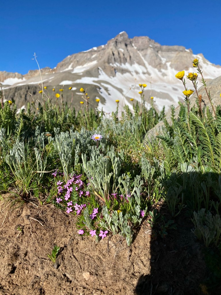 On the hike up, when I saw these flowers with the mountain in the background, I immediately thought of Chris. She loves to take pictures at odd angles, so I got down on the ground to try to take a picture the way she would…I miss her.